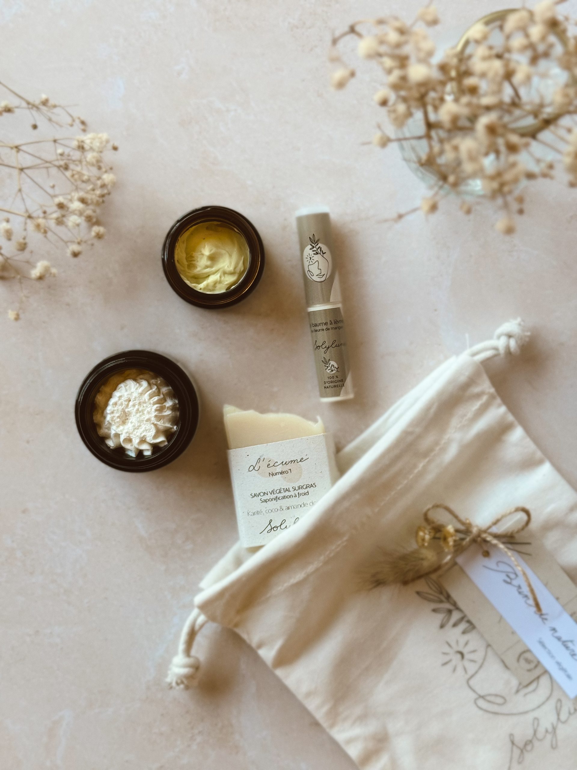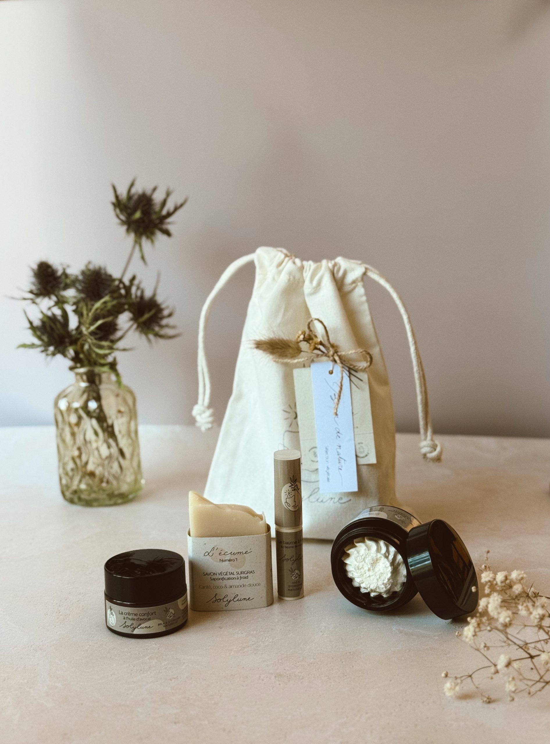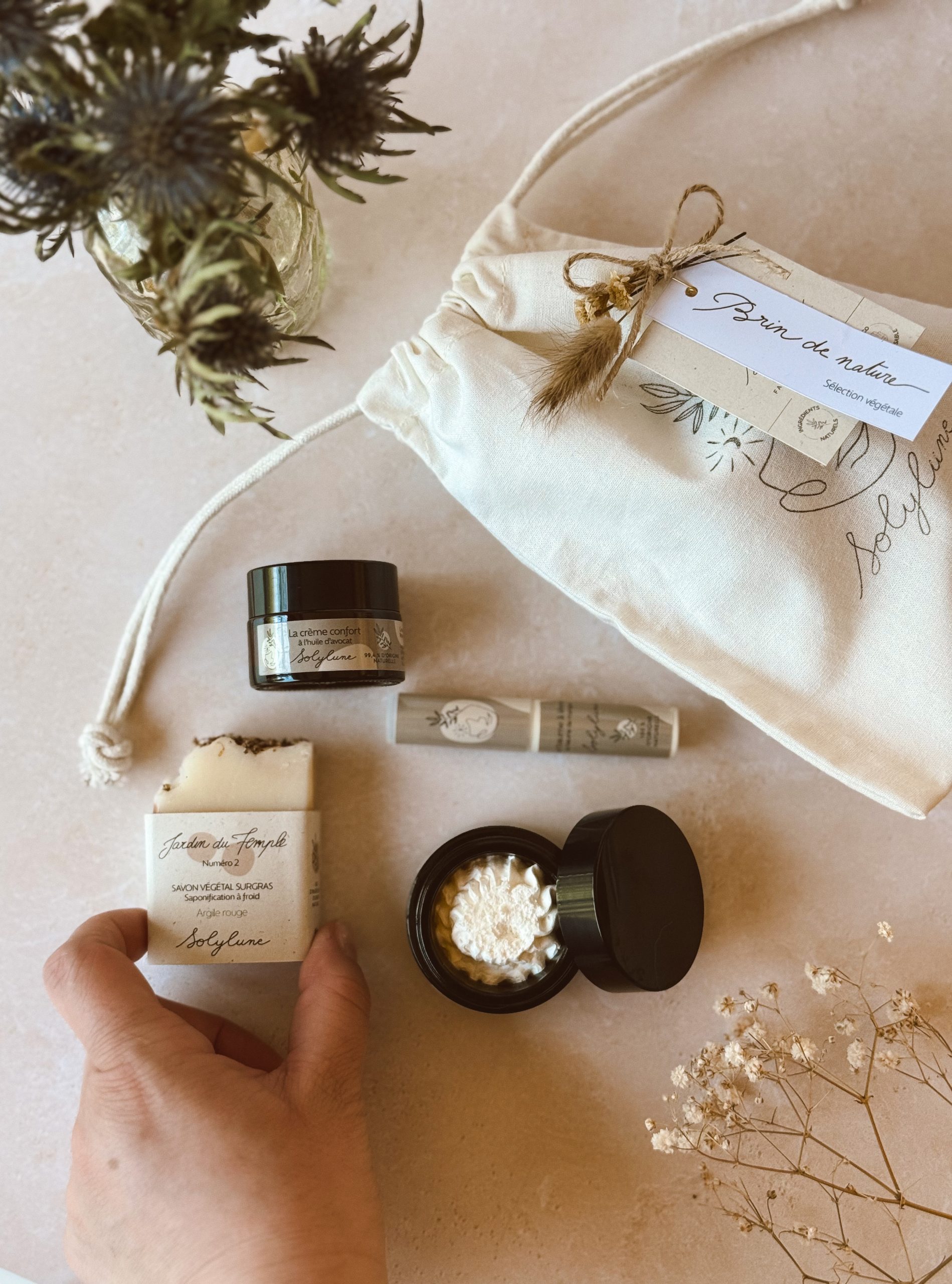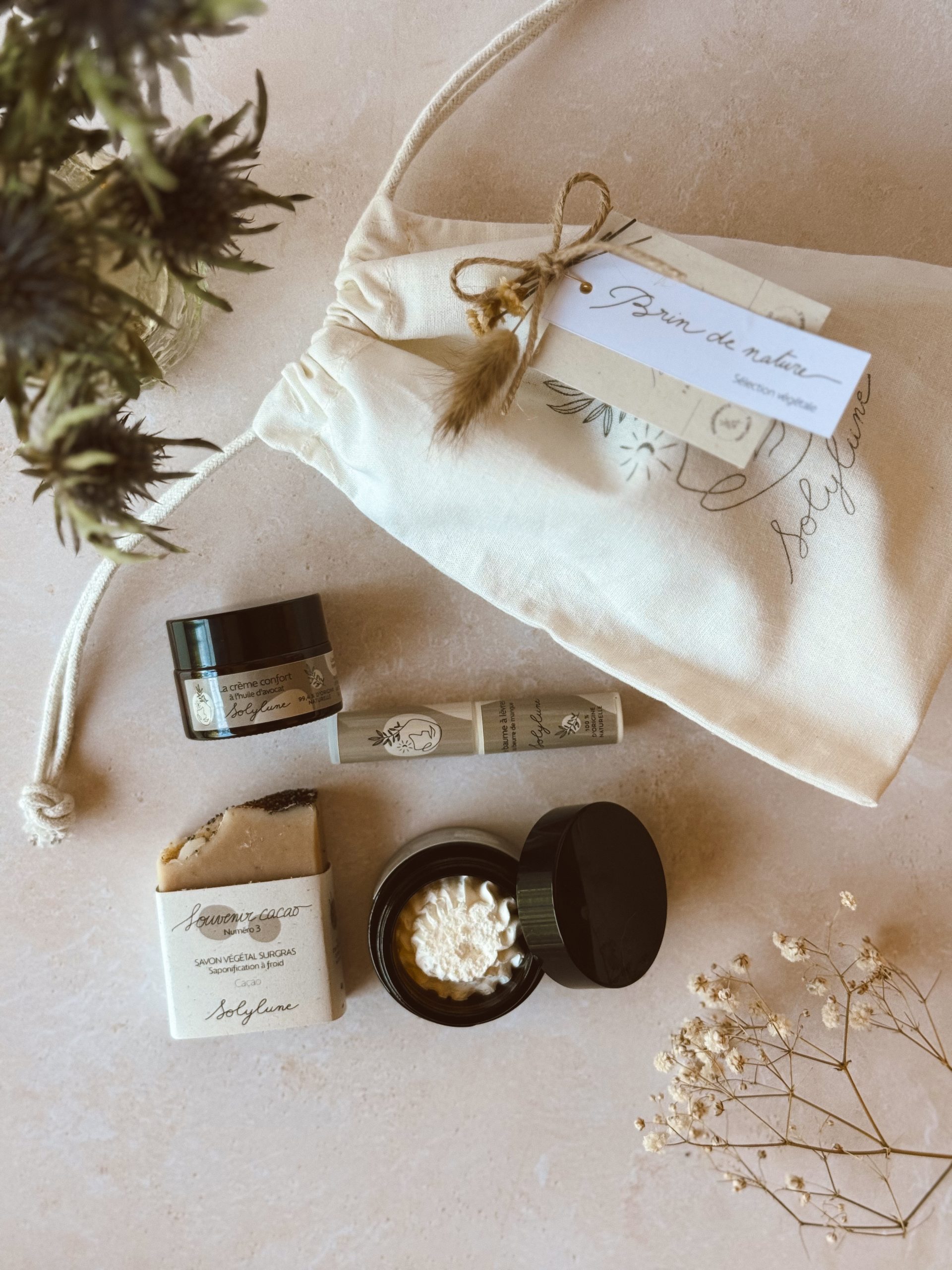 Brin de nature, c’est le coffret regroupant les indispensables de la routine végétale, idéal pour découvrir les soins Solylune 🤎