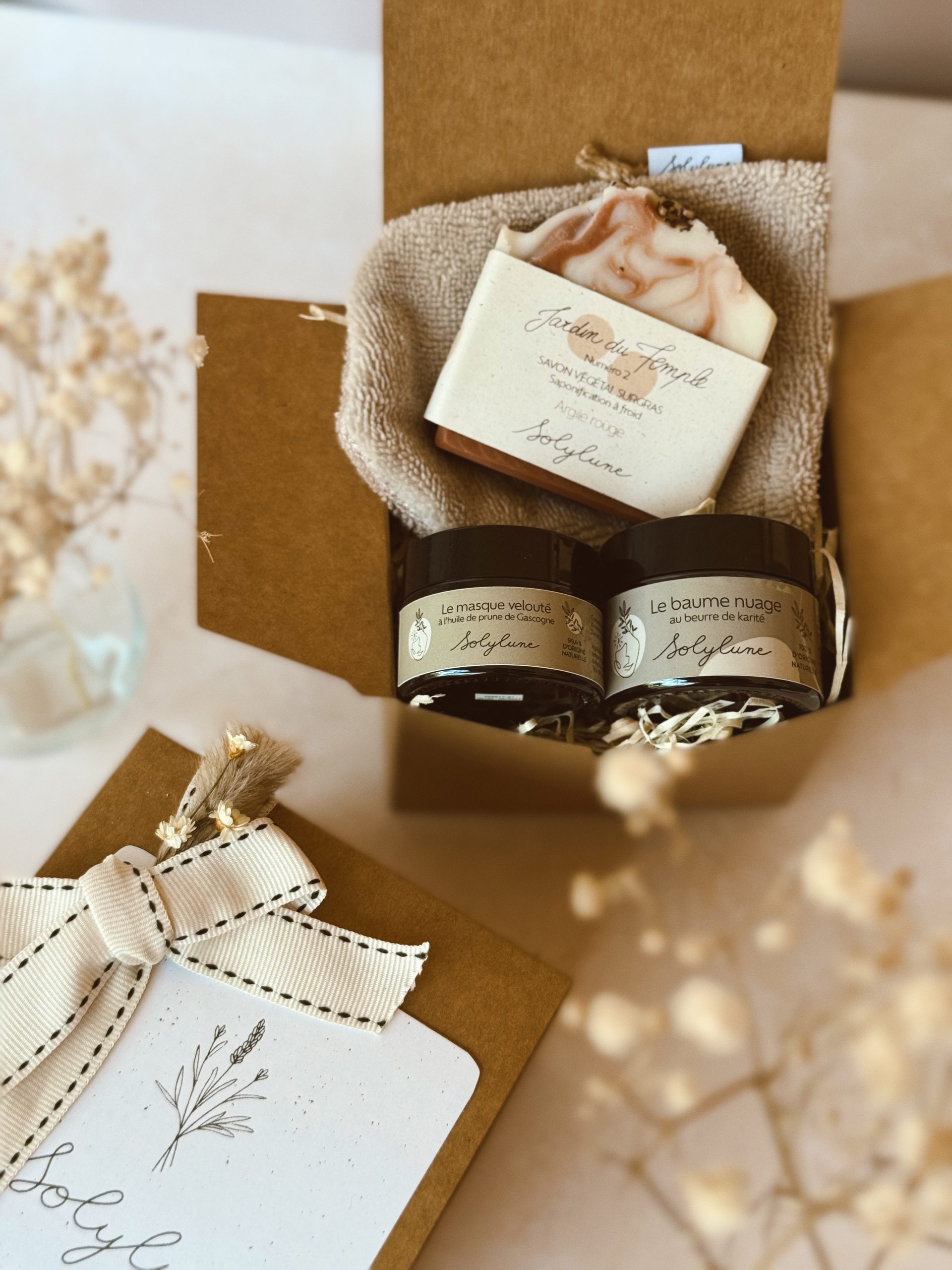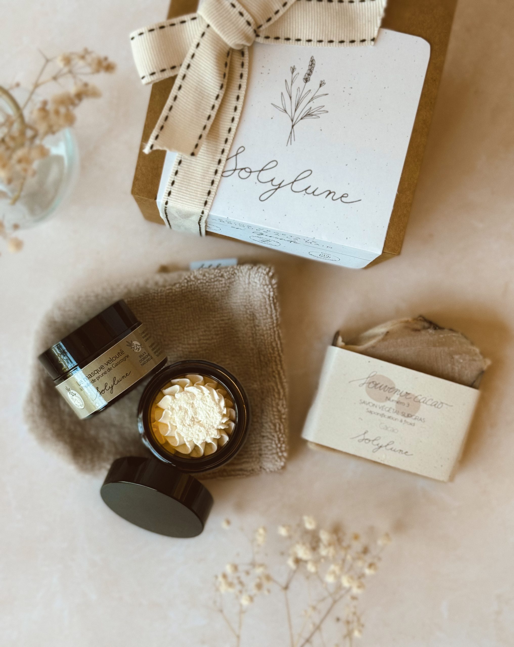Conçu pour choyer les peaux sèches, ce coffret s’adapte tout de même à toutes les peaux. Le baume nuage est un soin multi-usage (visage, corps) et Le masque velouté chouchoutera tous les types de peaux, ce qui fait de ce coffret un présent universel ! 🎁