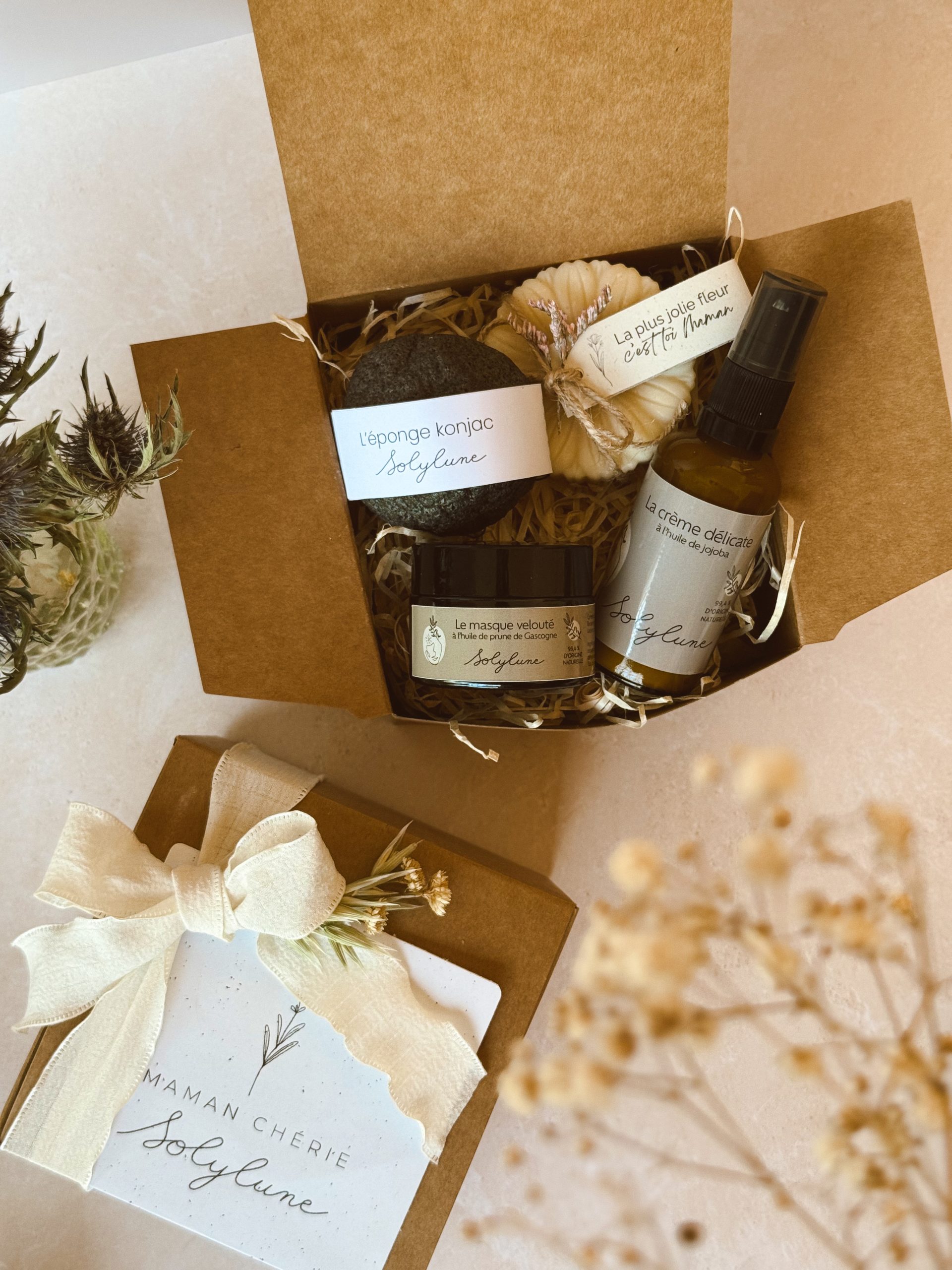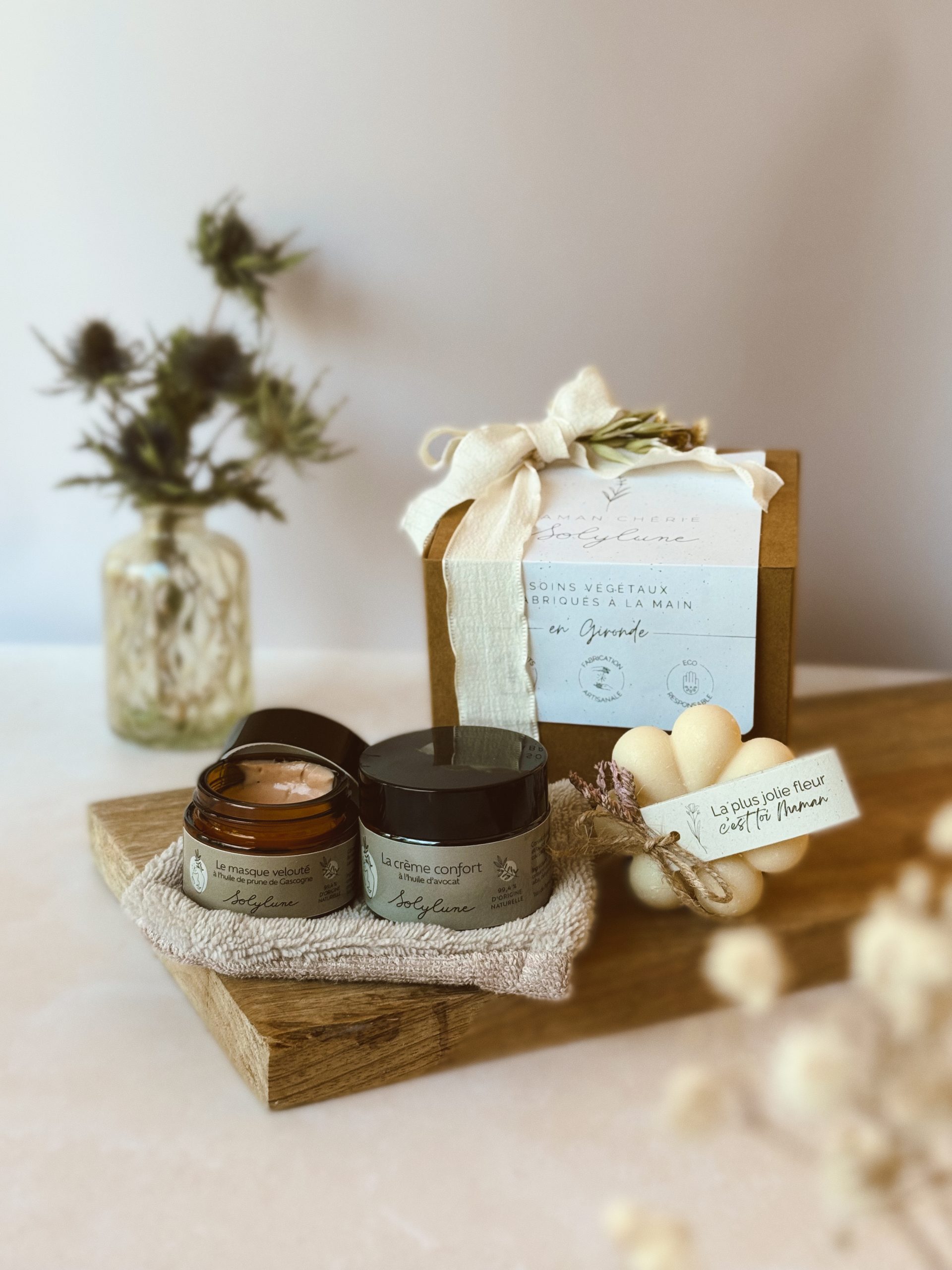 Un savon L’Écume fleuri parce que la plus jolie des fleurs : c’est elle, une crème visage naturelle pour un tendre baiser, un masque velouté à l’odeur délicieuse pour le plus réconfortant des câlins 🤎